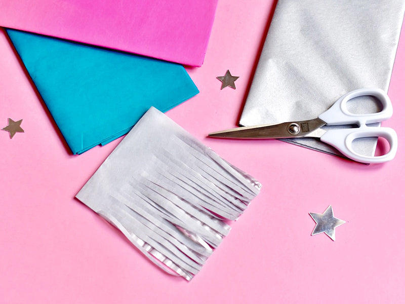 Découpez des franges dans vos 3 couleurs de papier de soie.