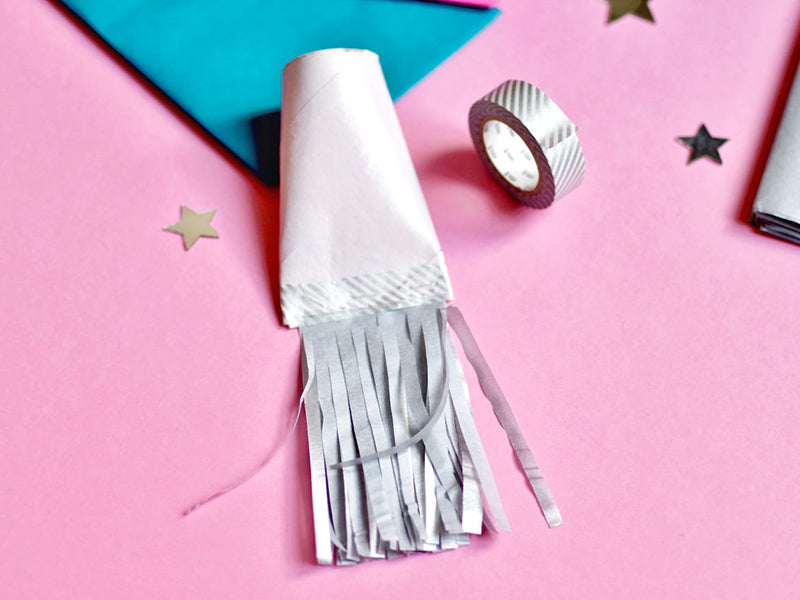 Recouvrez le bas du rouleau et les agrafes avec du masking-tape argenté.