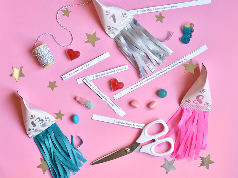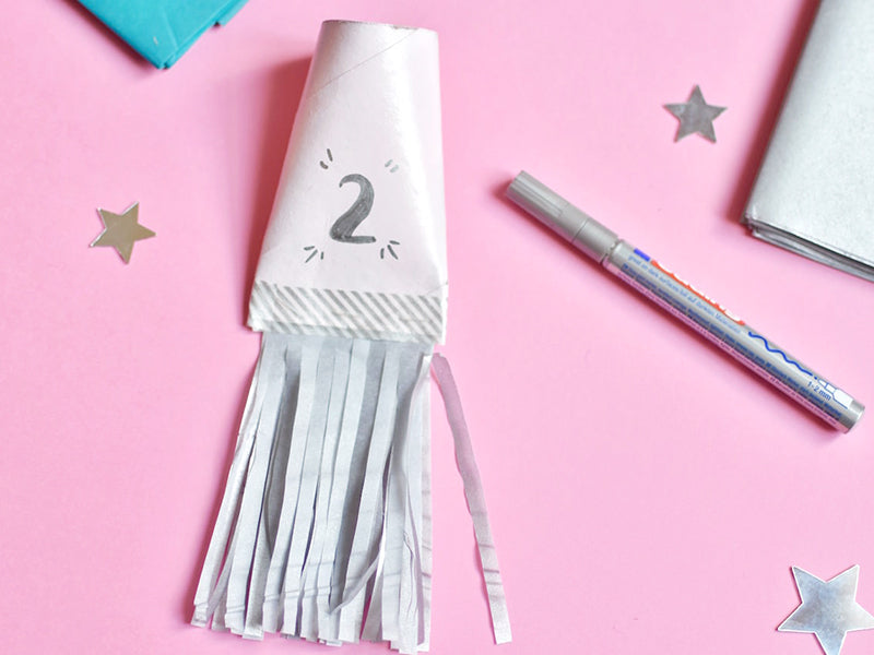 Ecrivez les 24 numéros du calendrier sur chaque "fusée" avec un feutre argenté.