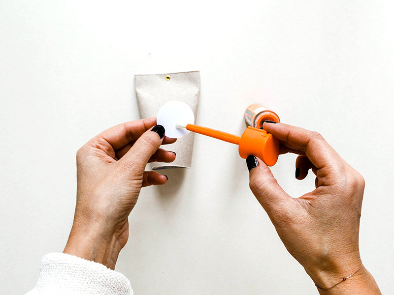 Collez le haut et ajoutez l'oeillet après avoir fait un trou.