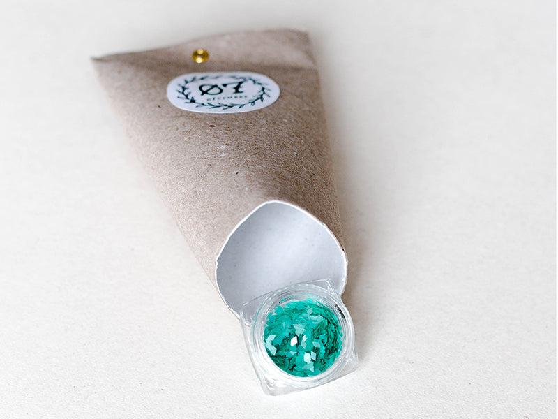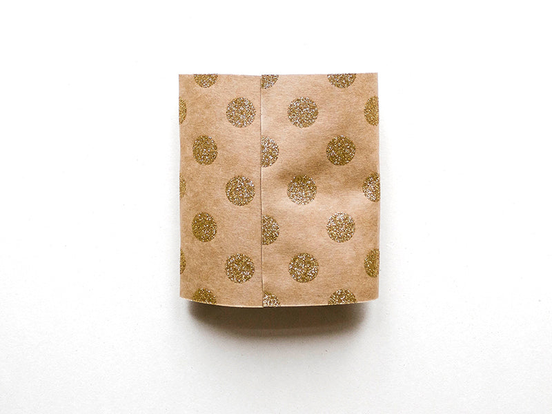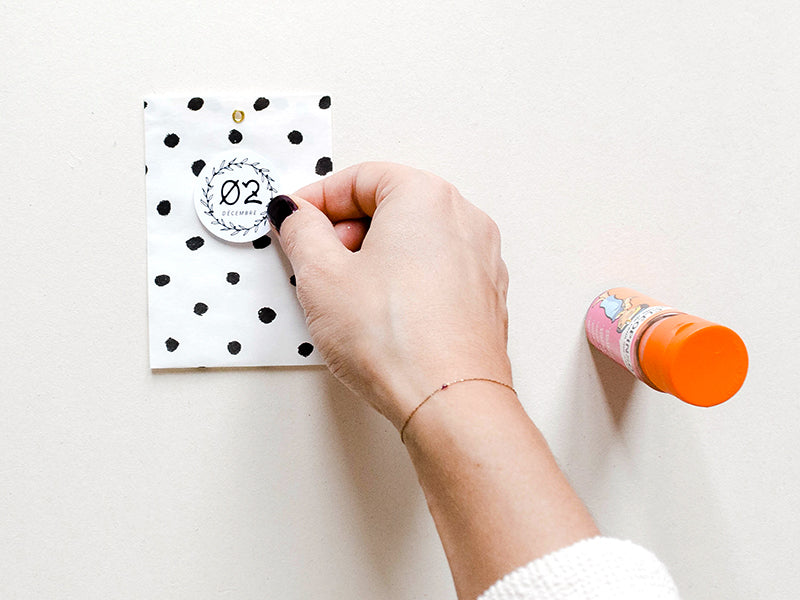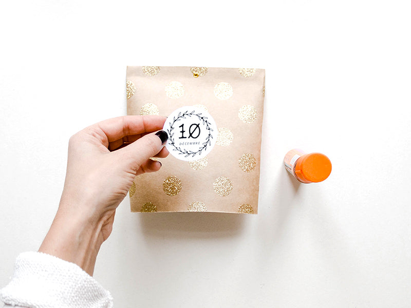 Aplatissez lehaut de la pochette dans le sens inverse pour former le berlingot, glissez la surprise et collez au pistolet à colle pour refermer.