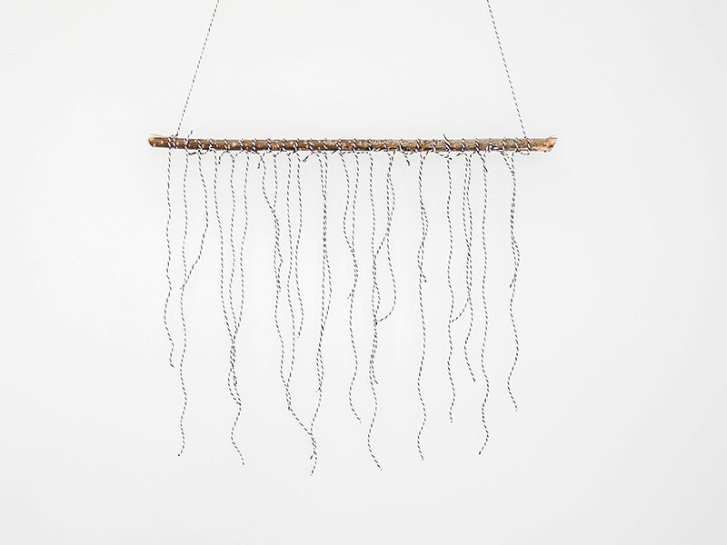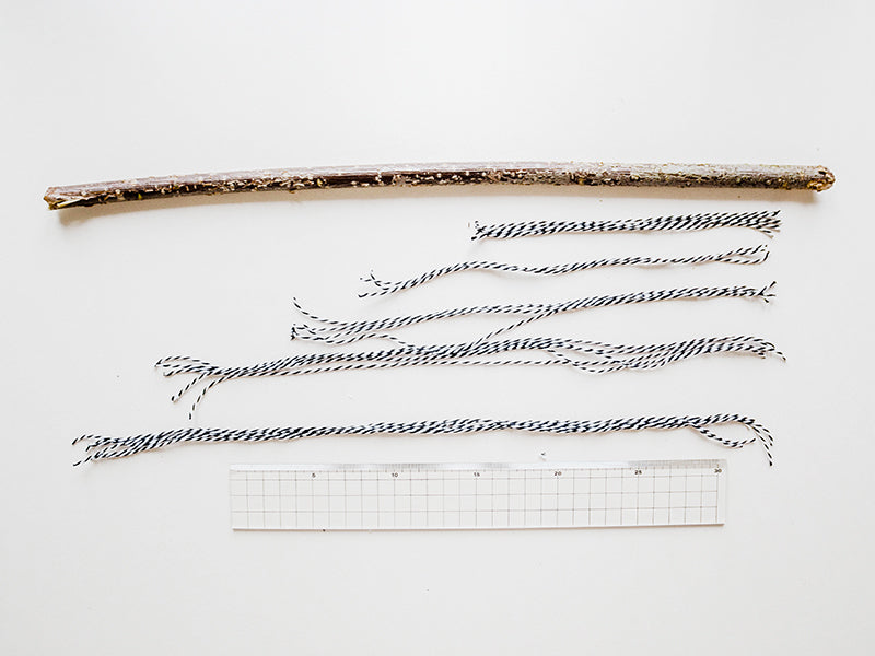 Prenez une branche d'au moins 25 cm et découpez 25 fils de tailles différentes.