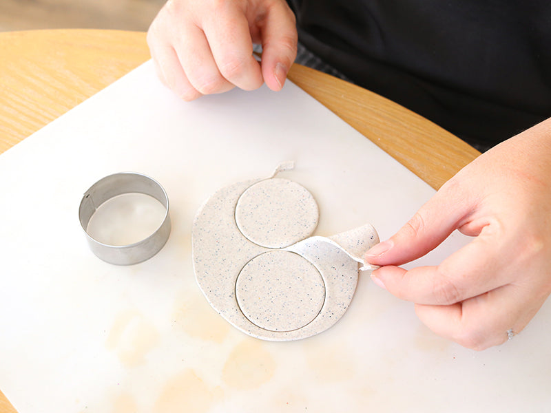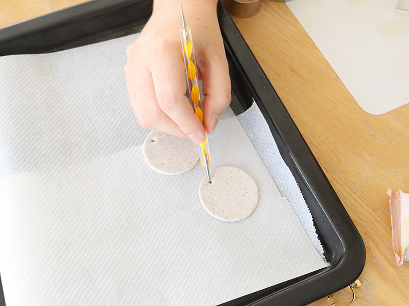 A l'aide d'un dotting tool, percez un petit trou dans chaque rond de pâte.
