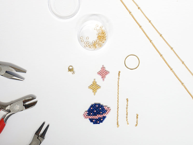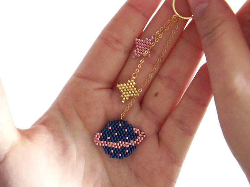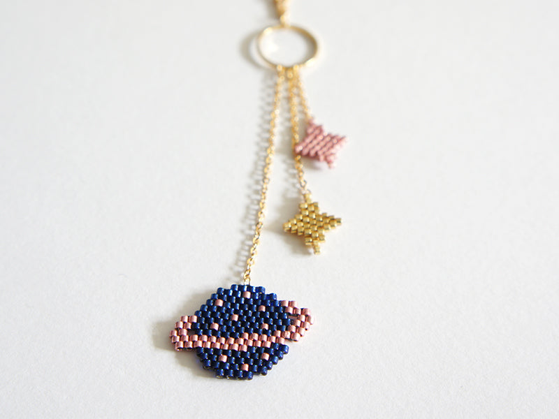 Partez voyager sur une autre planète avec ce collier cosmique en perles Miyuki de Charlotte Souchet.