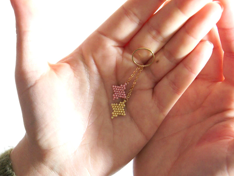 Réalisez 3 tissages brick stitch en perles miyuki, 2 étoiles et 1 planète.