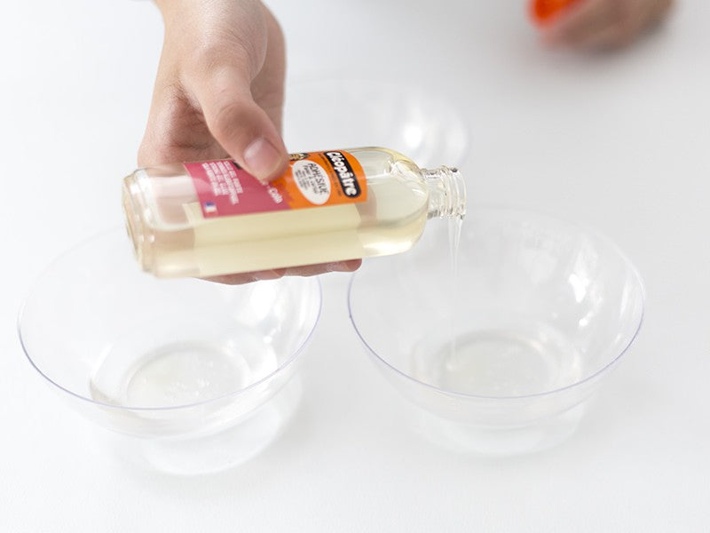 Versez tout le contenu de votre pot de colle dans 3 bols. Essayez de mettre une quantité égale de colle dans chaque pot.