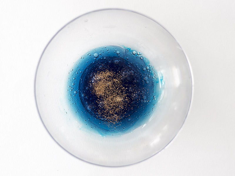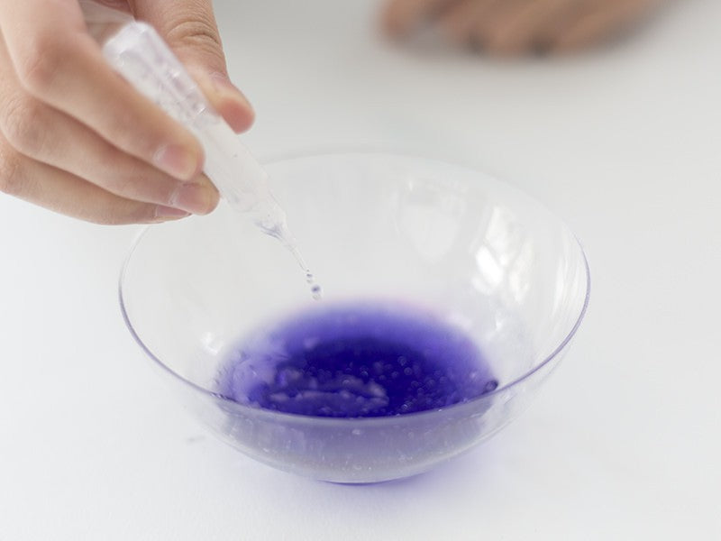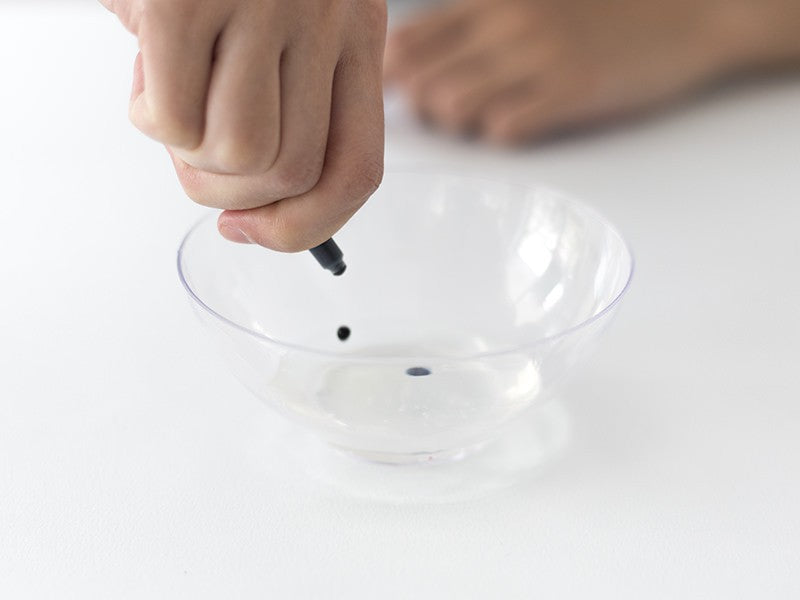 Dans un premier bol, versez 3 gouttes d'encre bleue,