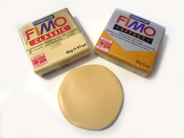 Mélangez de la Fimo "Champagne" avec un peu de fimo "Or" pour faire la base des biscuits.