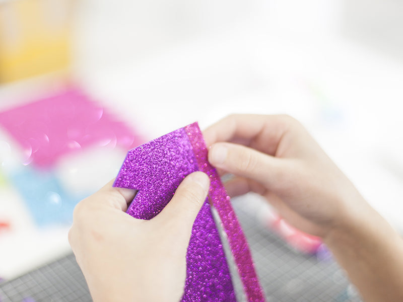 N'hésitez pas à utiliser plusieurs couleurs de mousse pailletée.