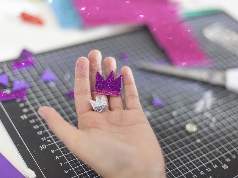 La broche: Réalisez avec une chute de mousse pailletée la forme crantée d'une couronne...