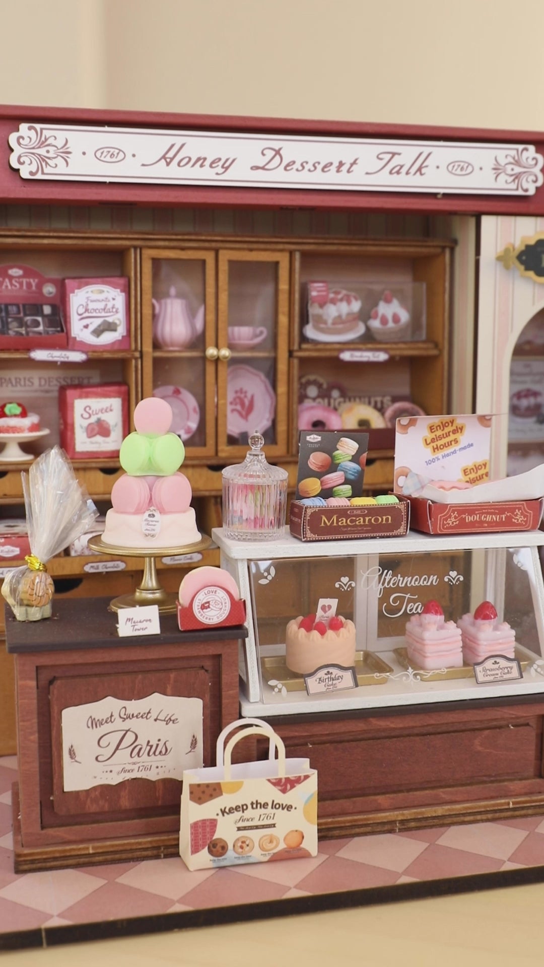 PPlongez dans l’univers délicieusement sucré du Honey Dessert Talk, une maquette miniature DIY de la marque Rolife. Ce charmant café miniature est une invitation à un moment de douceur et de gourmandise. Avec ses vitrines remplies de pâtisseries, son ambiance chaleureuse et ses détails exquis, ce petit café est le décor rêvé pour les amateurs de maquettes et de douceurs.