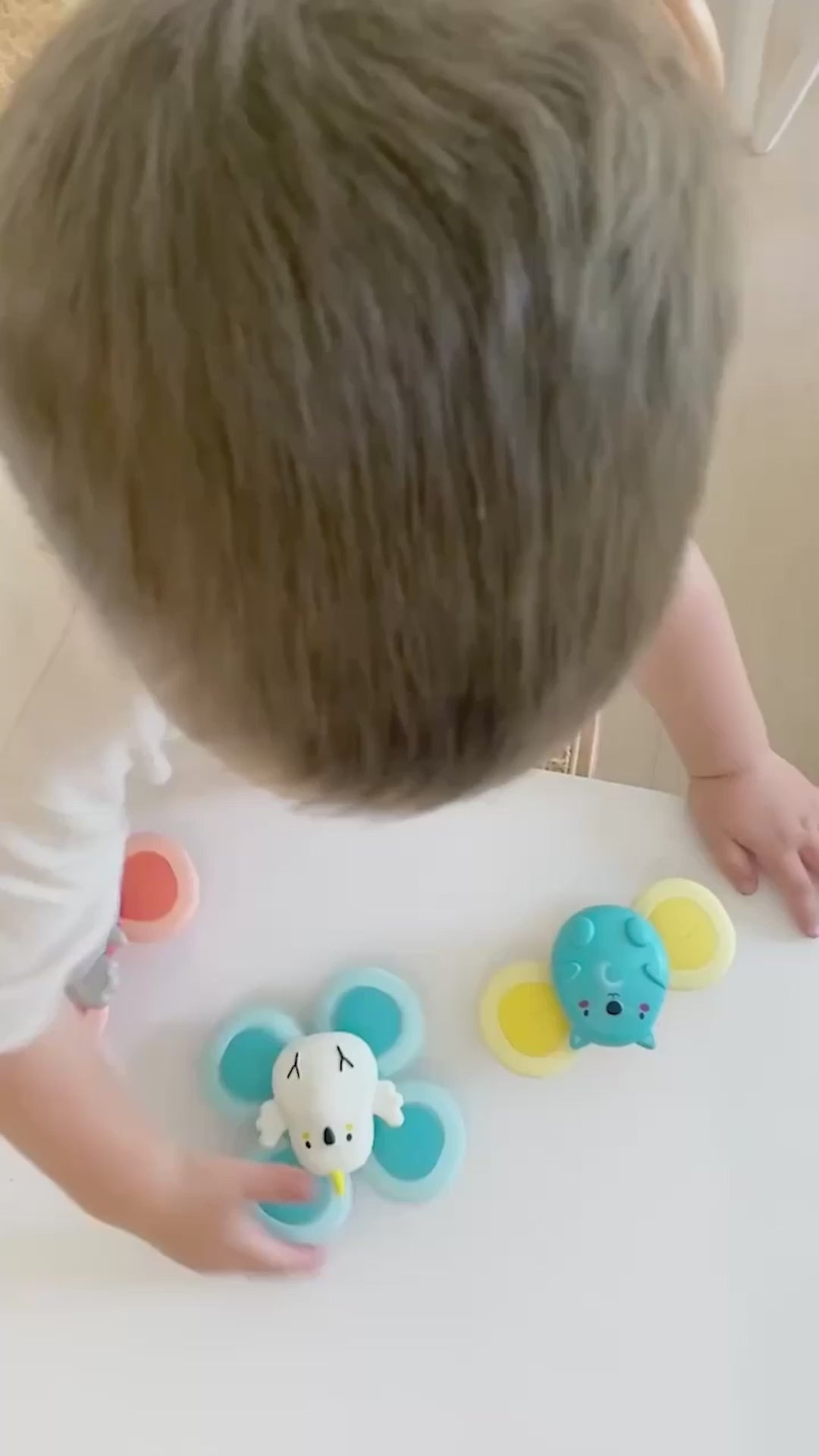 Fixées grâce à une ventouse bien solide, elles tiennent sur toutes les surfaces lisses : la tablette de la chaise haute, le carrelage de la salle de bain ou même la vitre d’une fenêtre. Il suffit d’un petit geste, et les animaux se mettent à tournoyer gaiement. Le mouvement, les textures et les couleurs éveillent la curiosité et encouragent bébé à recommencer encore et encore.