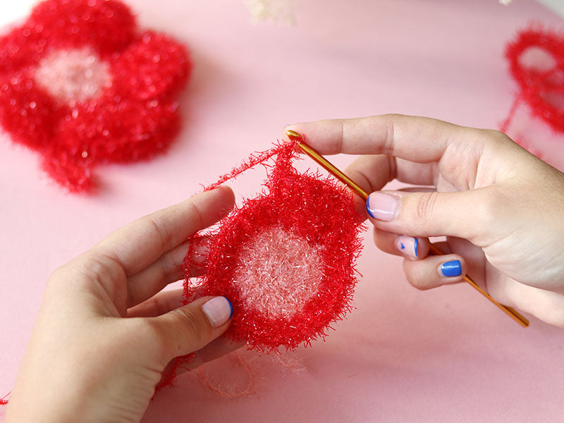 Vous en avez marre d'acheter des éponges plusieurs fois par mois ? Passez au zéro-déchet avec cette éponge à crocheter en forme de fleur ! Colorée, pratique et réutilisable à l'infini, cette éponge rouge et rose va devenir votre meilleur allié pour la vaisselle. Hop à la machine et vous pouvez la réutiliser !